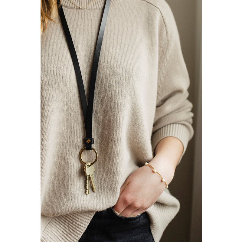 Nøkkelsnora er laget av kromfritt, vegetabilsk garvet skinn – et miljøvennlig valg der planteekstrakter brukes i stedet for skadelige kjemikalier. Resultatet er et vakkert materiale av høy kvalitet som eldes med verdighet, og som med litt kjærlighet varer livet ut.