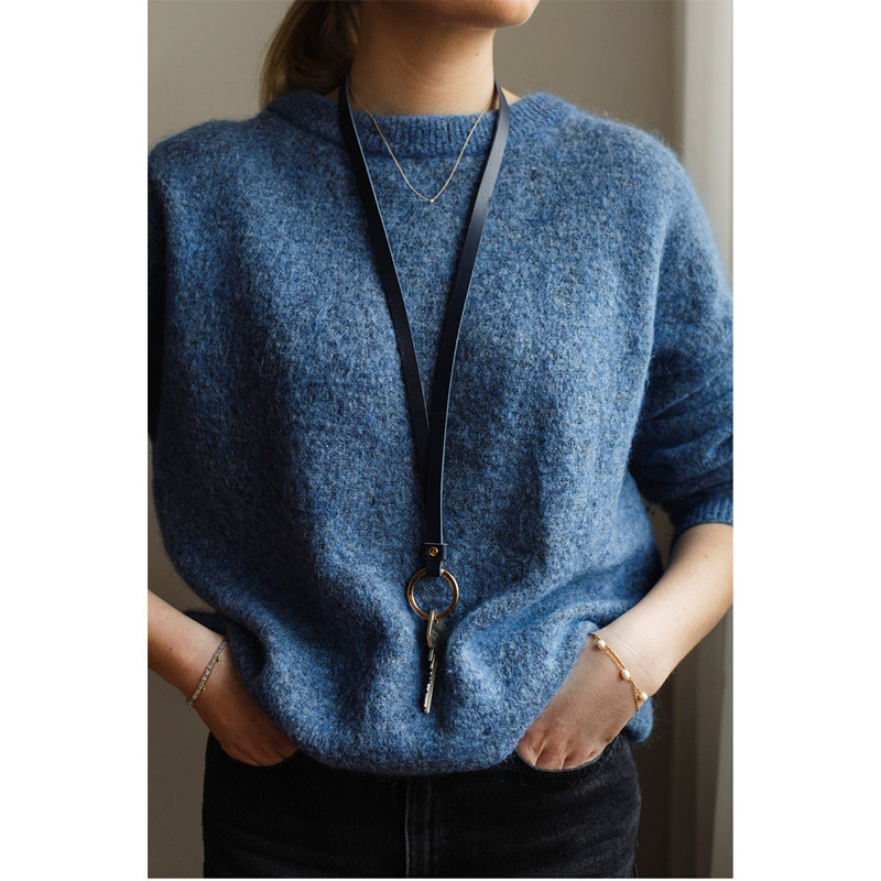 Nøkkelsnor Skinn Mørk Blå