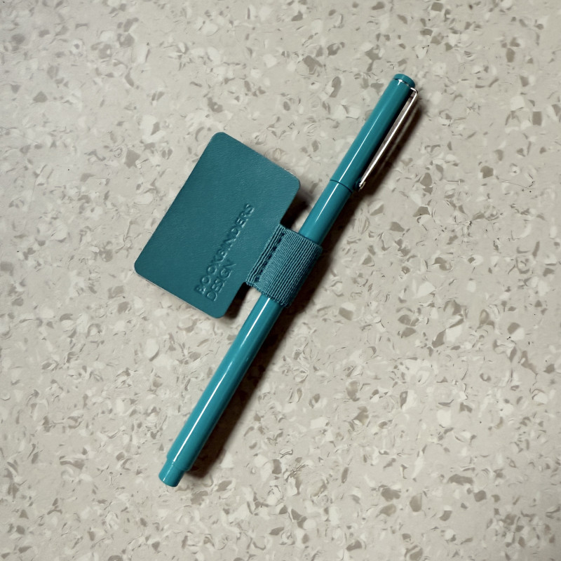 Nå er det slutt på å miste penna! Denne praktiske penneholderen fra Bookbinders Design festes på det bakre coveret, og penn festes i strikken.